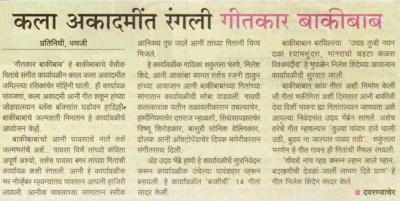 An Indian Classical Vocalist par extraordinaire. A golden voice synoymous to AIR, Panaji for the last 18 years, and the host on popular shows, Goenche Lahren and Hello Chitranjan...Read More >